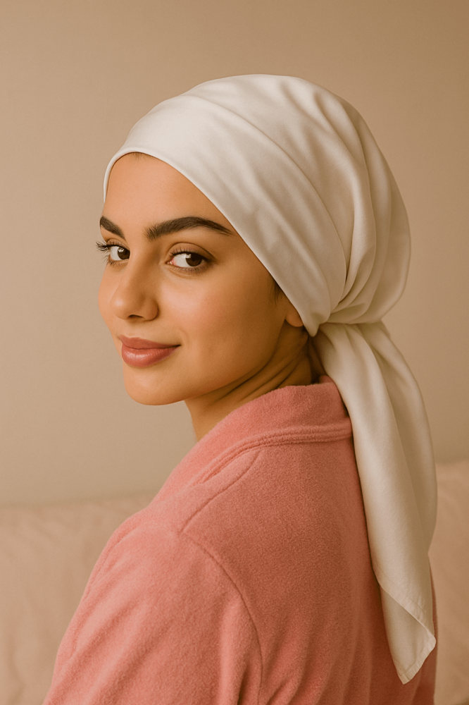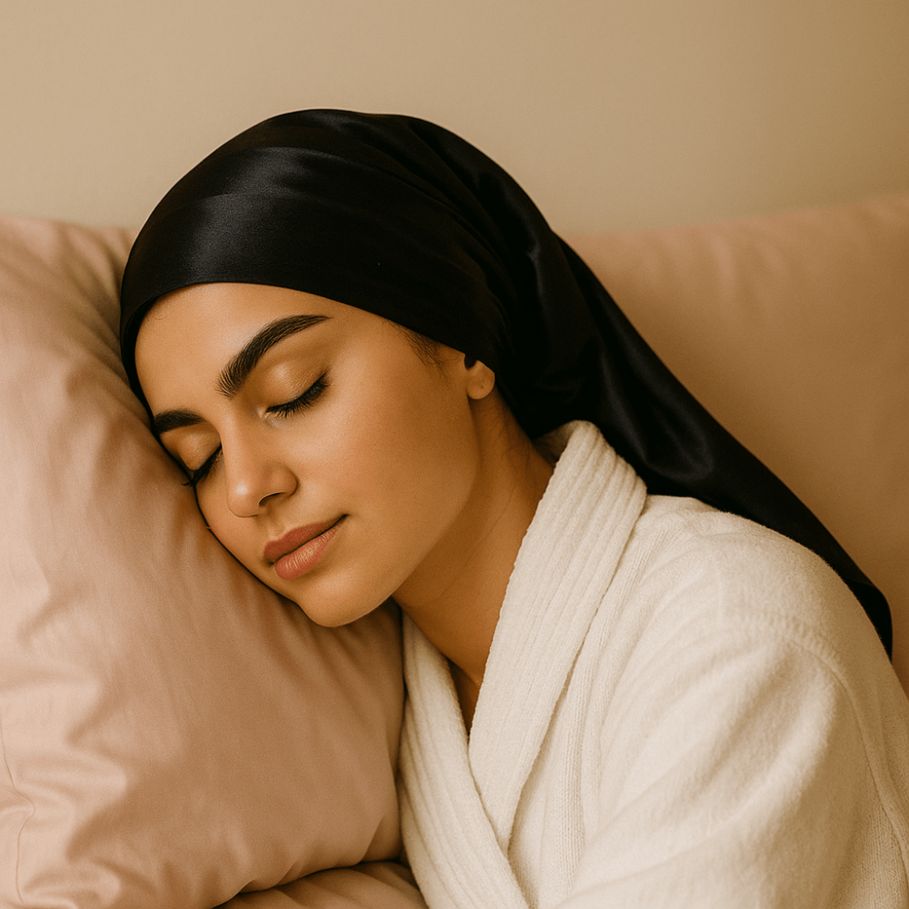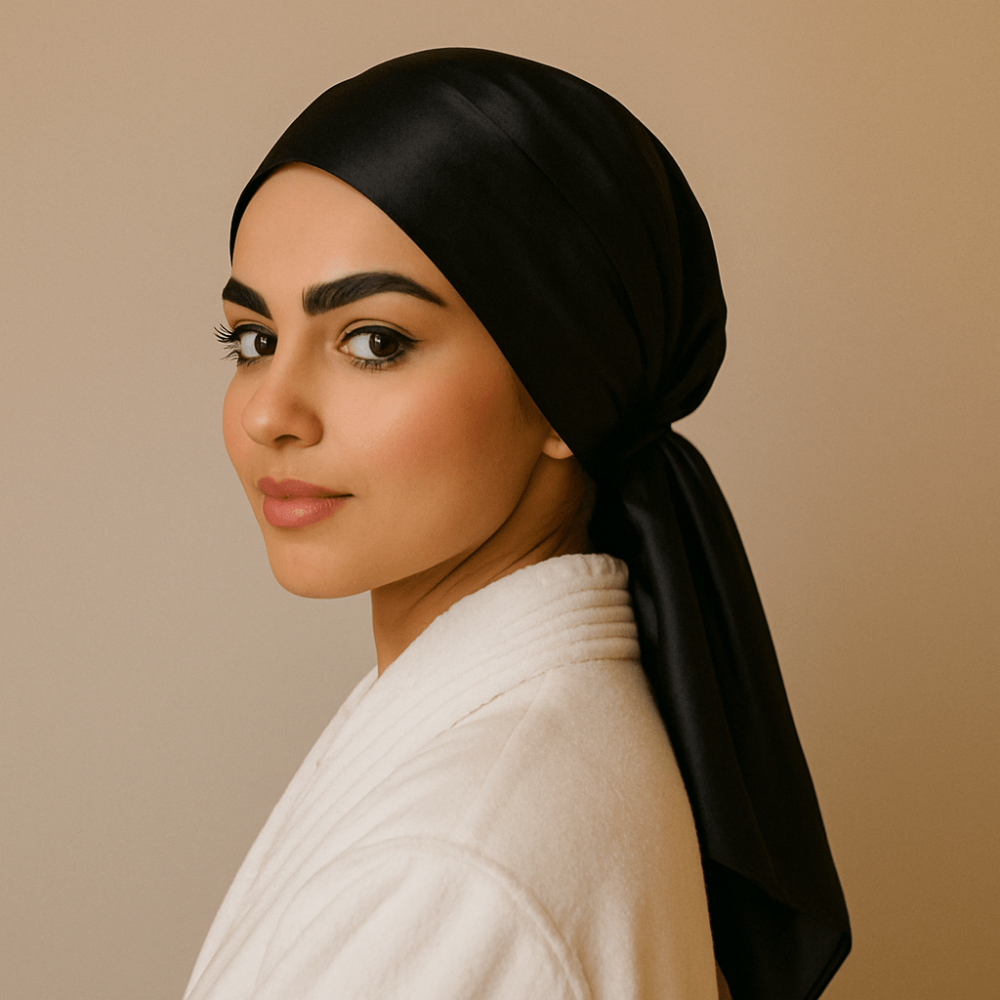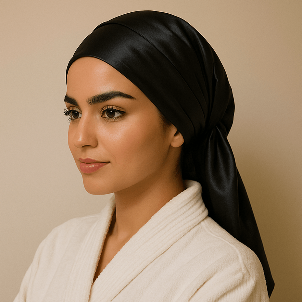 توربان متجر حرير مصنوع من حرير التوت الطبيعي 100%، مصمم بعناية ليكون رفيقك الليلي لجمالك الصباحي، فالحرير لا يمتص الزيوت الطبيعية ولا كريمات العناية اللي تستخدمينها، بل يحافظ عليها داخل شعرك، ويساعد على تقليل الهيشان بنسبة كبيرة.