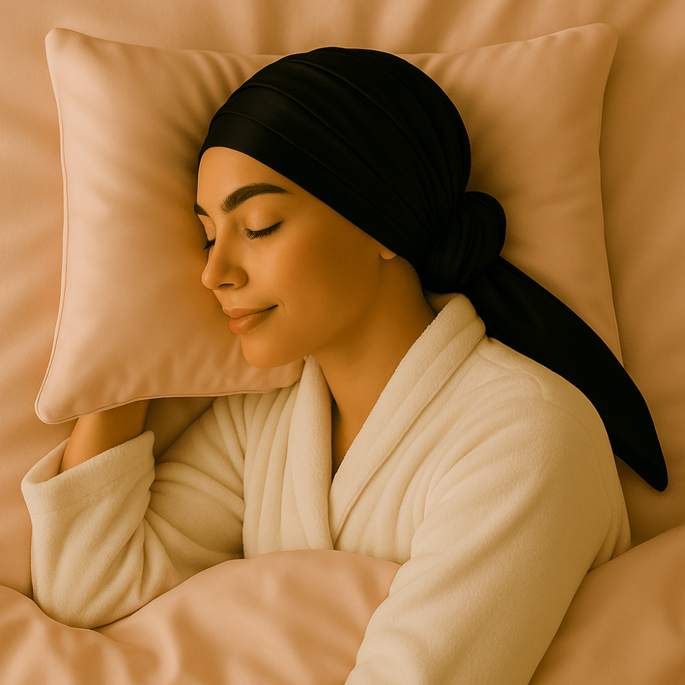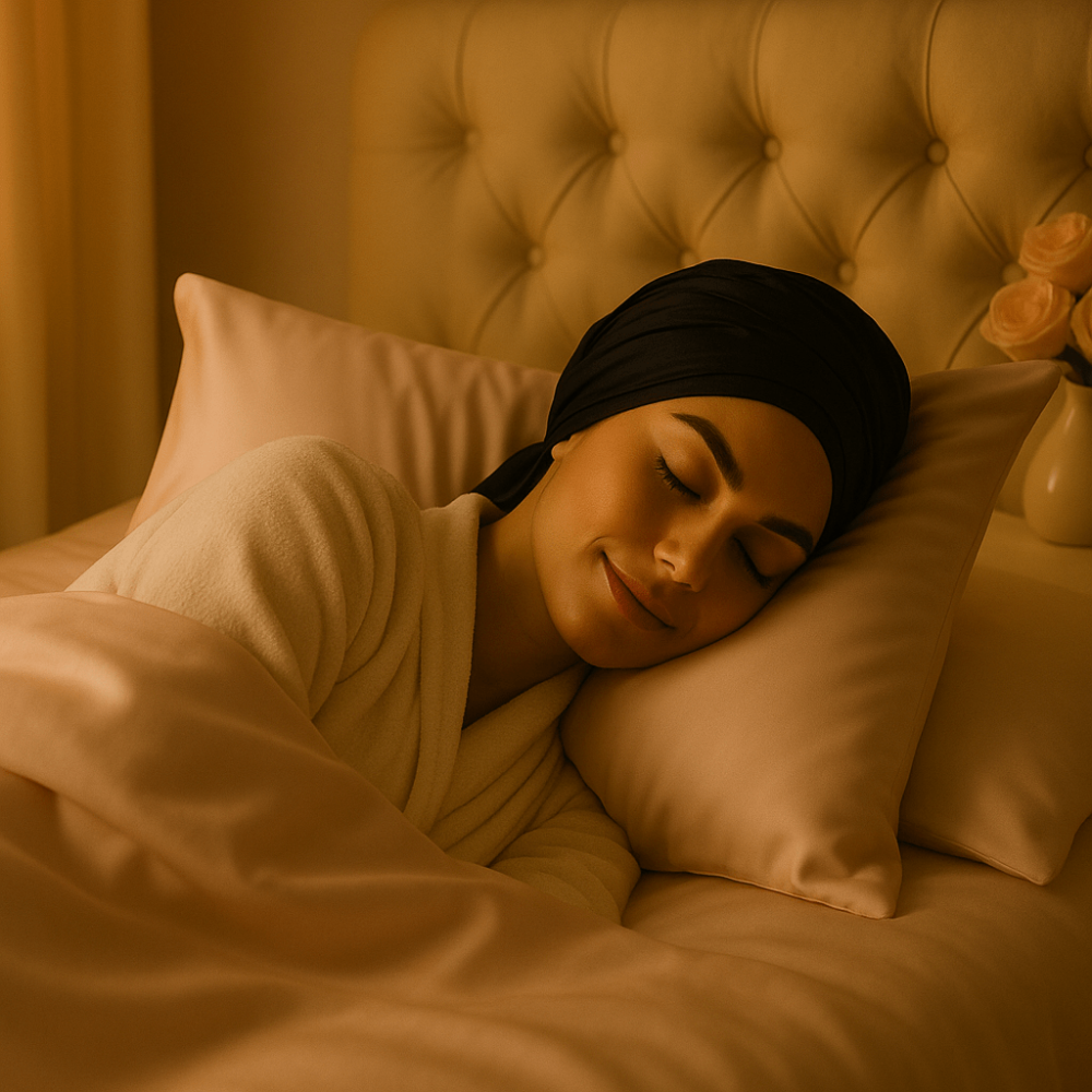 تصميمه مريح يلتف على الرأس بسهولة، ويمنحك نوم هادئ بدون تشابك أو ضغط على الفروة.
